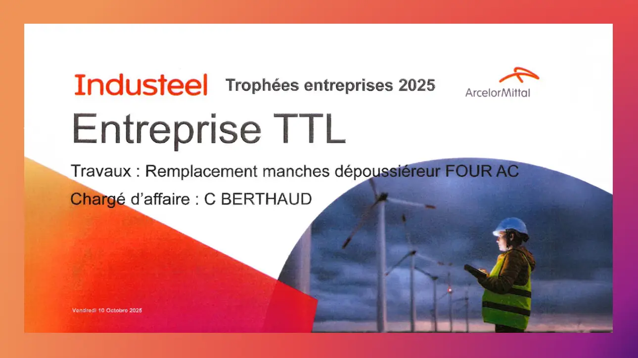 Le vendredi 10 octobre, TTL a eu l’honneur de recevoir le Trophée “Environnement Sécurité” remis par le Directeur du site INDUSTEEL – Groupe ArcelorMittal au Creusot.